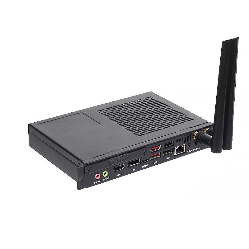 Moduł OPS PC jest idealny dla każdej aplikacji wymagającej niezawodnego i potężnego modułu mini PC.środowiska ograniczone przestrzenią i zastosowania niskoenergetycznePonadto konstrukcja bez wentylatora zapewnia cichą pracę i wydłużoną żywotność.